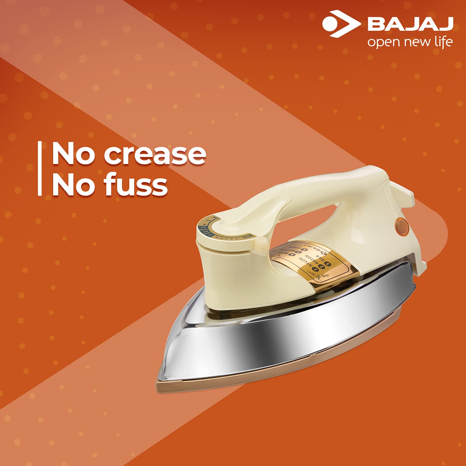 Bajaj DHX-9 1000W Heavy Weight Dry Iron with Advance Soleplate and Anti-Bacterial German Coating Technology, Ivory