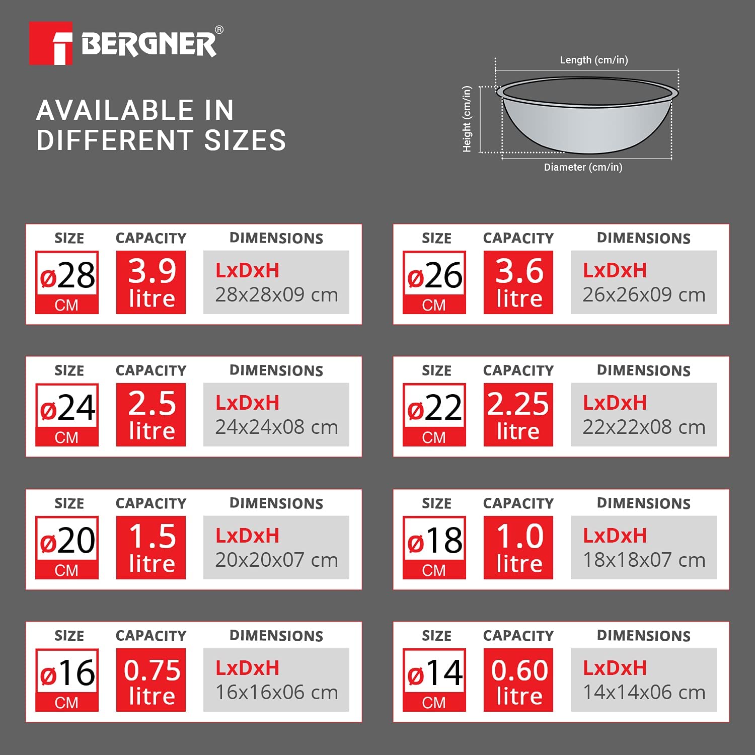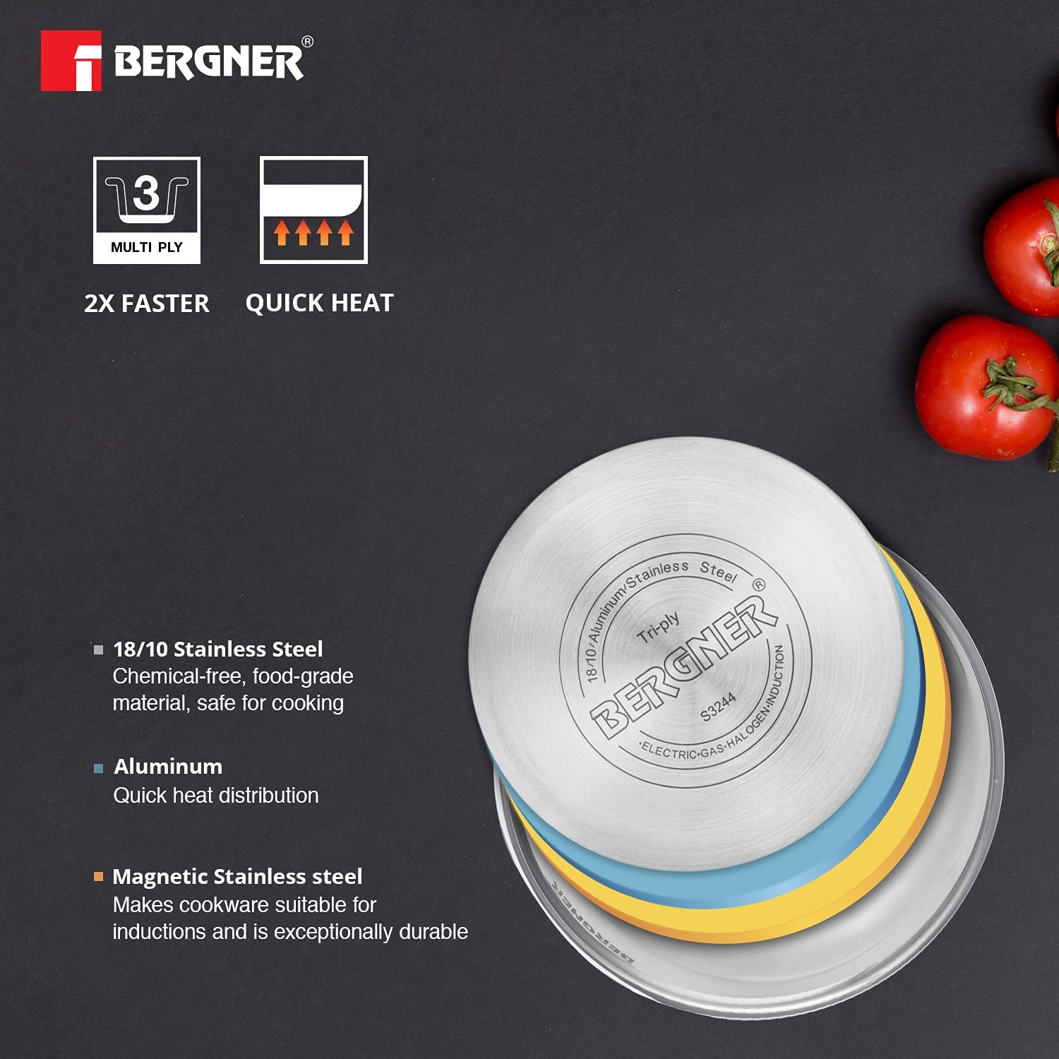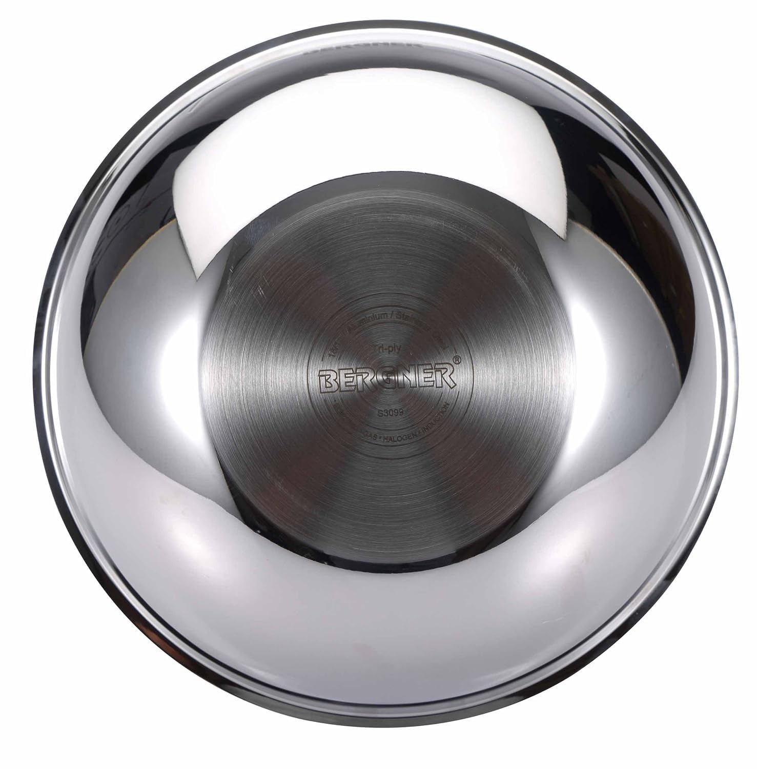 Bergner Argent TriPly Stainless Steel Tasra with Stainless Steel Lid, Tasla with Lid, Food Safe, Flared Rim, Durable, Dishwasher Safe,