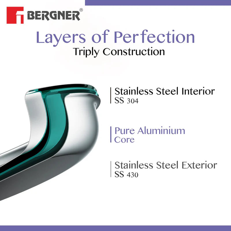Bergner BE Bergner Essentials Tri-Ply Stainless Steel Biryani Handi with Lid, Induction Bottom (5-Year Warranty)