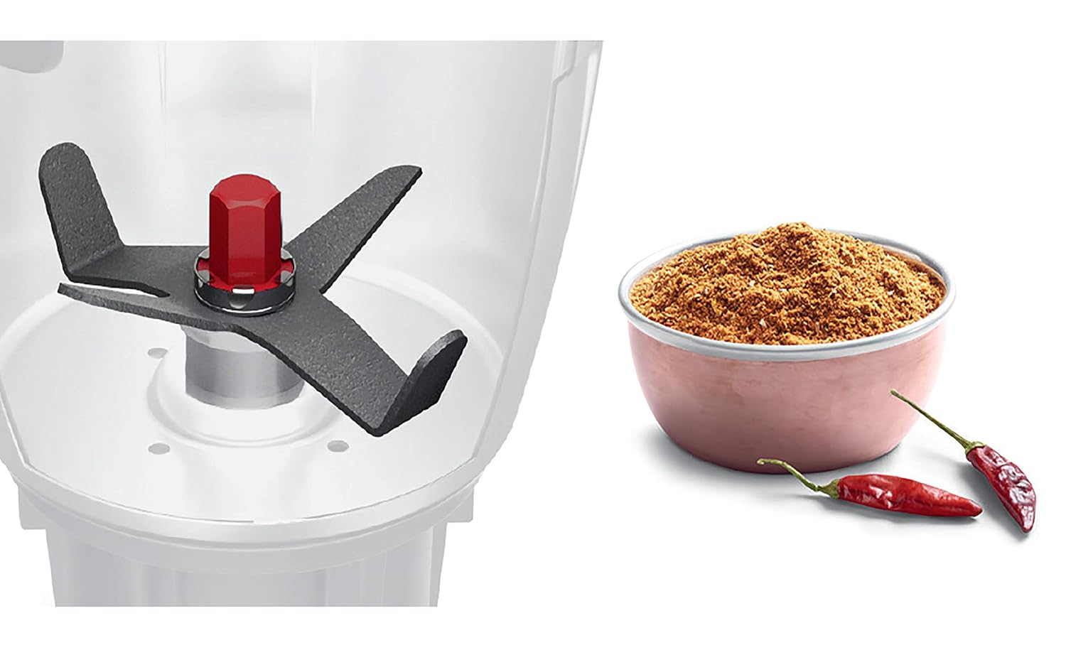 - Uniquely designed blunt pounding blade with thick edges which replicate the pounding effect on dry ingredients, thus giving authentic texture and taste