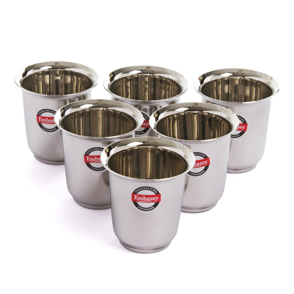 Embassy Stainless Steel Mayuri Coffee Glass/Tumbler, Pack of 6, Size 1-100 ml/Glass