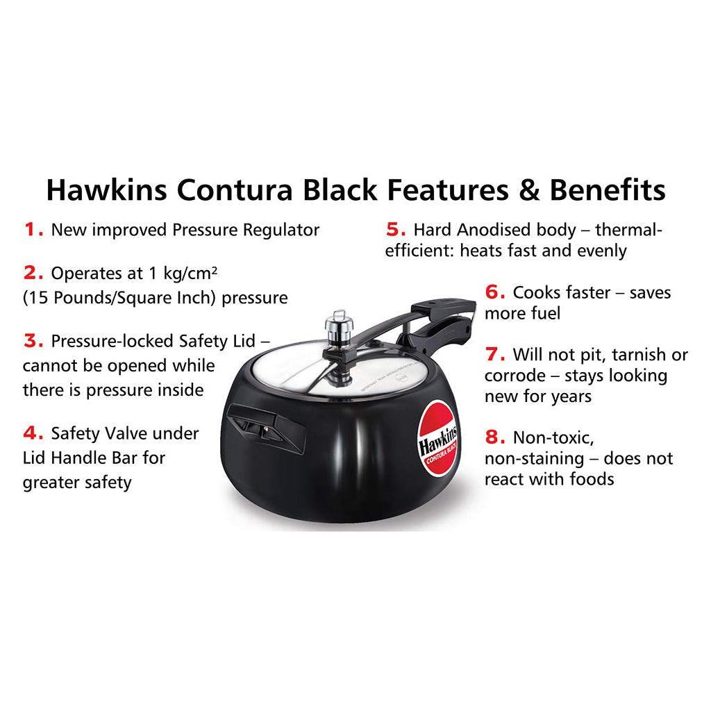 Hawkins Contura Black Pressure Cooker, 5 Litre, Black (CB50)