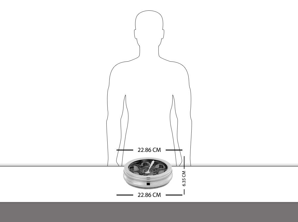 - Package Contents: 1-Piece Spice Box (7 Cups) and 1-Piece Lid. Diameter-23 x 23 x 6.5