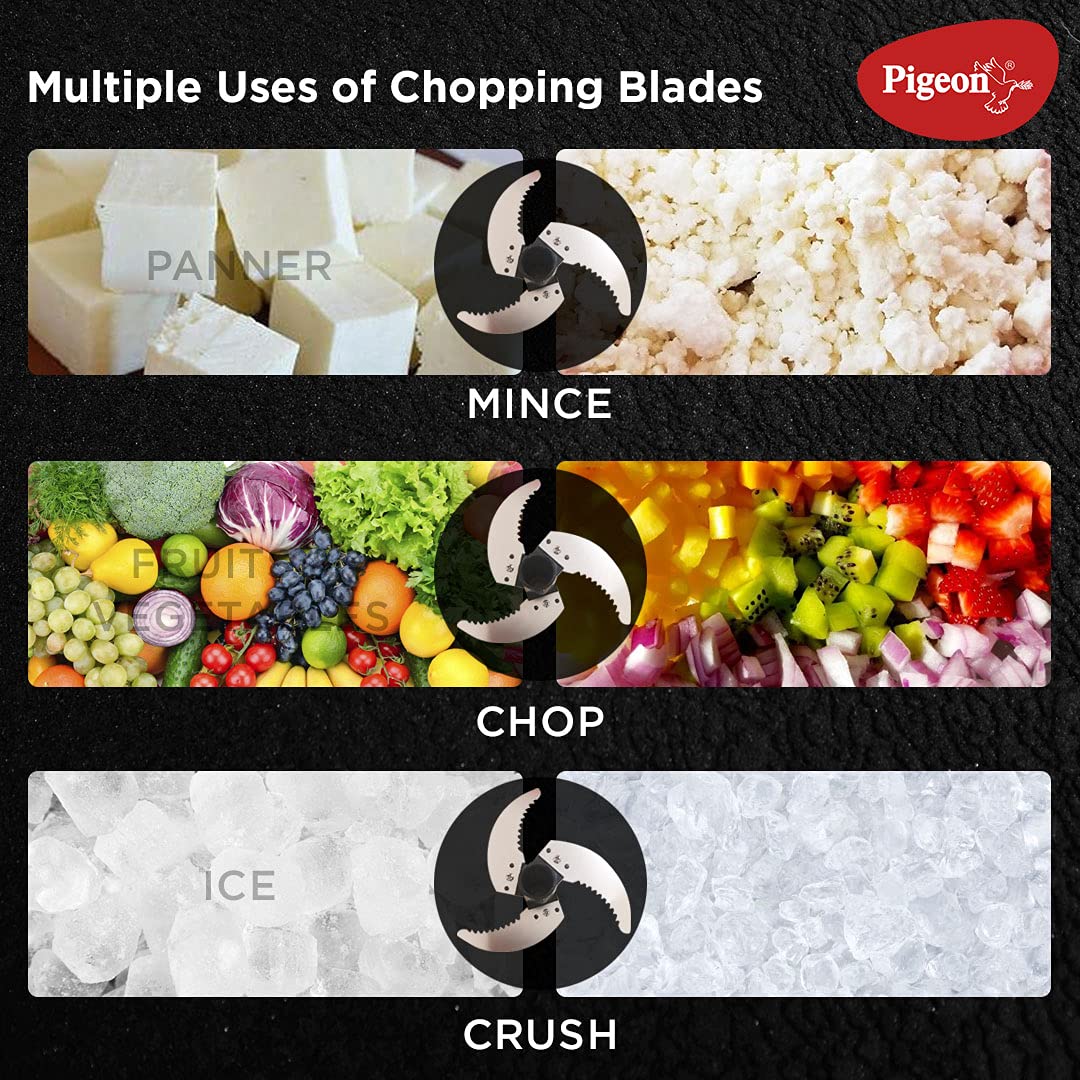 - The Chopper comes with High quality sharp stainless steel blades for quality and life. (Blades are sharp, be carful while using).