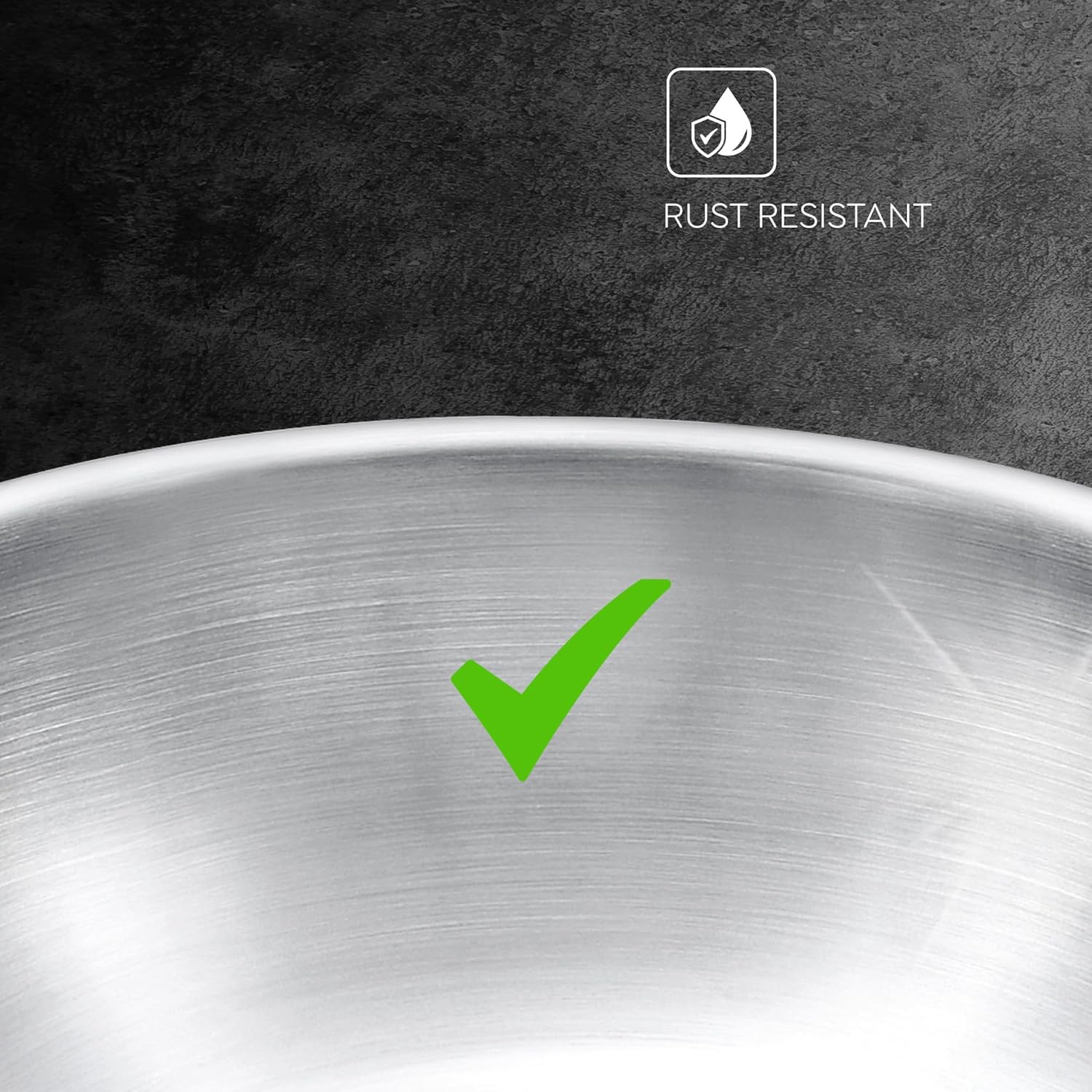 Our cookware comprises a tri-ply layer of 304 food-grade stainless steel, ensuring top-notch durability. The aluminum gauge enhances heat distribution for uniform cooking, while its induction compatibility adds versatility to your culinary adventures.
