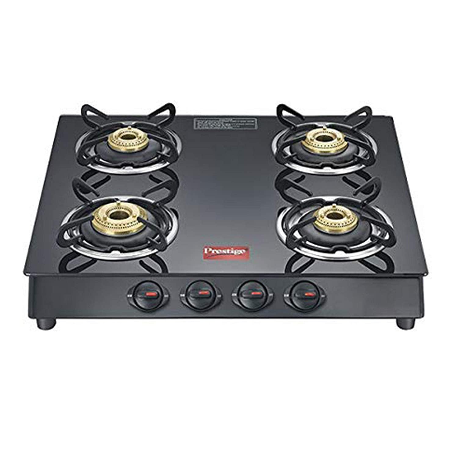 - The specialty of this Glass Top Gas Stove from Prestige is that it is compact in size and thoughtfully designed to consume less countertop space.