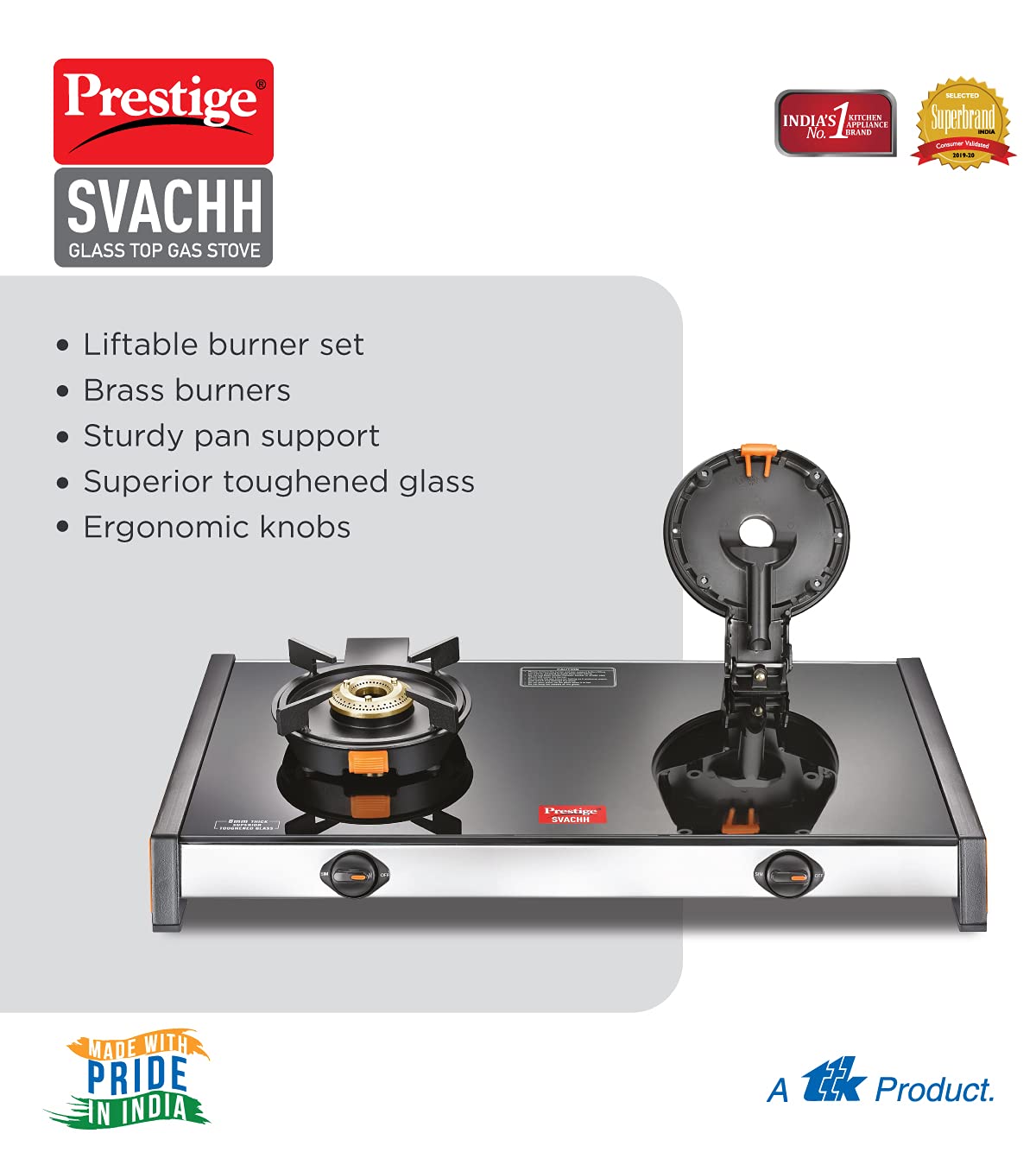 Prestige Svachh GTSV-02 Glass top LP Gas Table, 2 Burner, With Liftable Burner Set