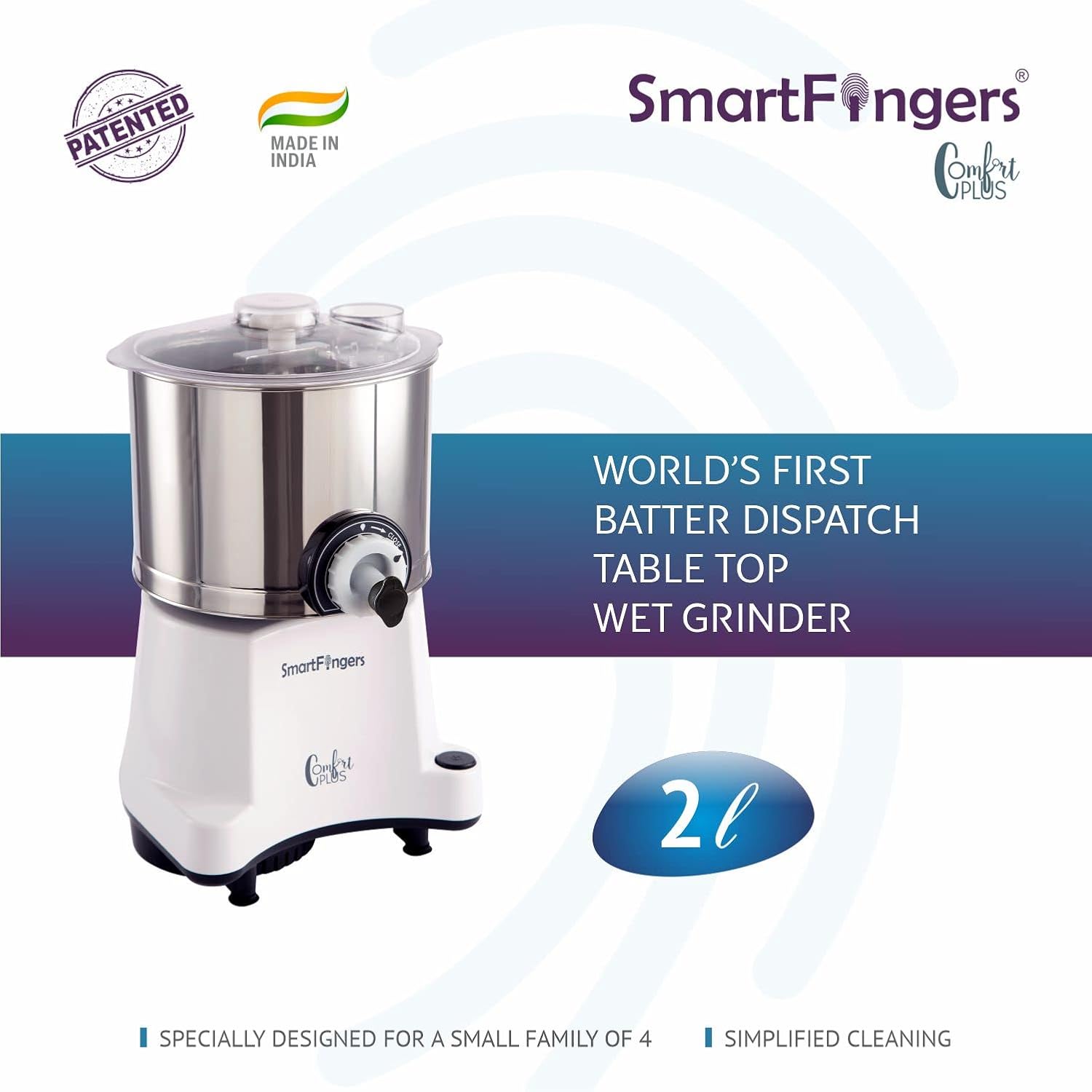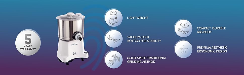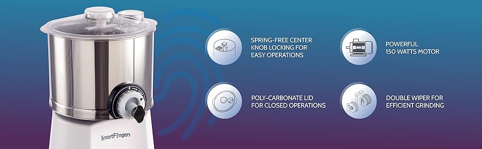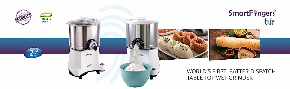 SmartFingers Comfort Plus Table Top magic Wet Grinder 230V 50hz, 2 Liter, White, 2 Stone