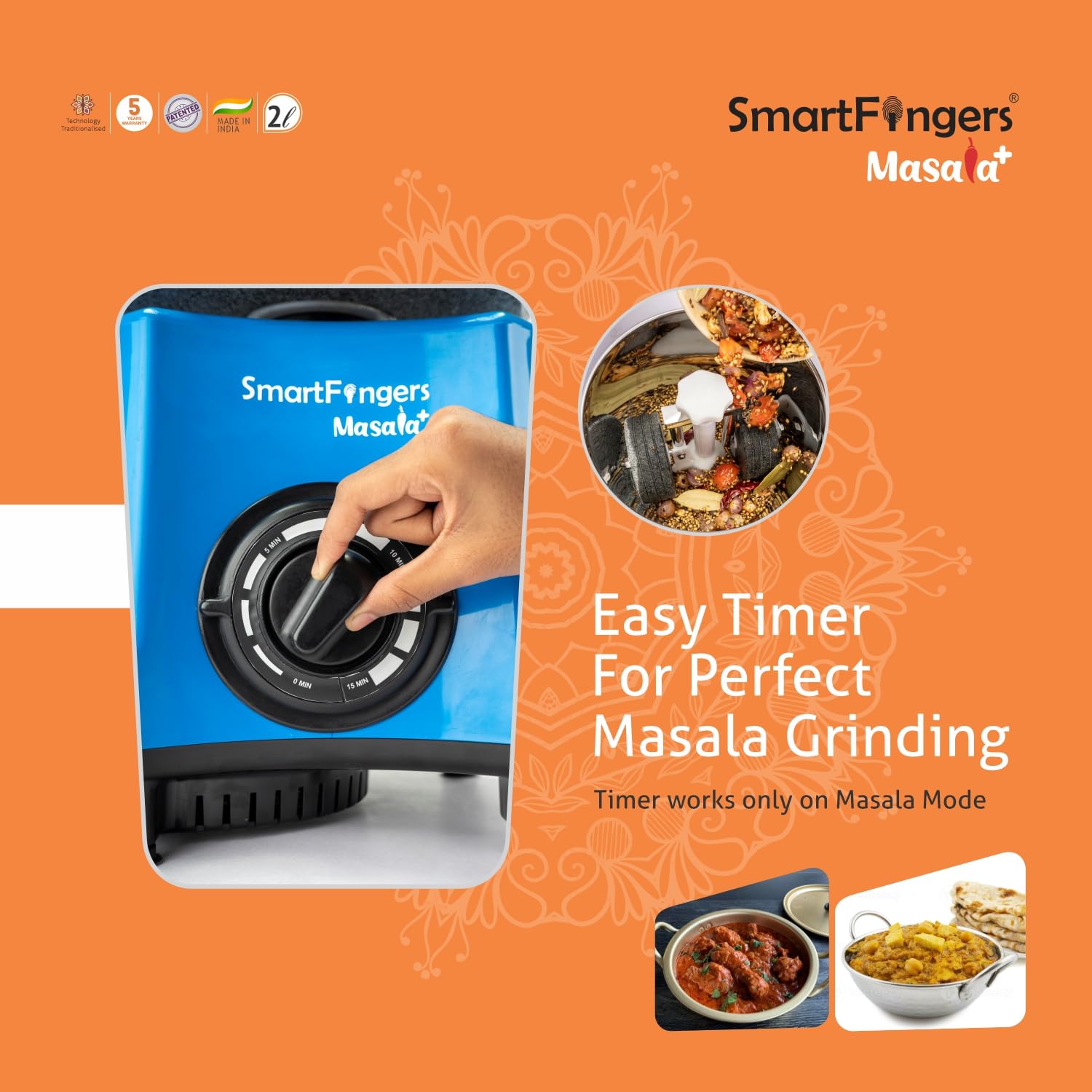 SmartFingers Masala + Table Top Masala Wet Grinder 230V 50hz, 2 Liter, Blue