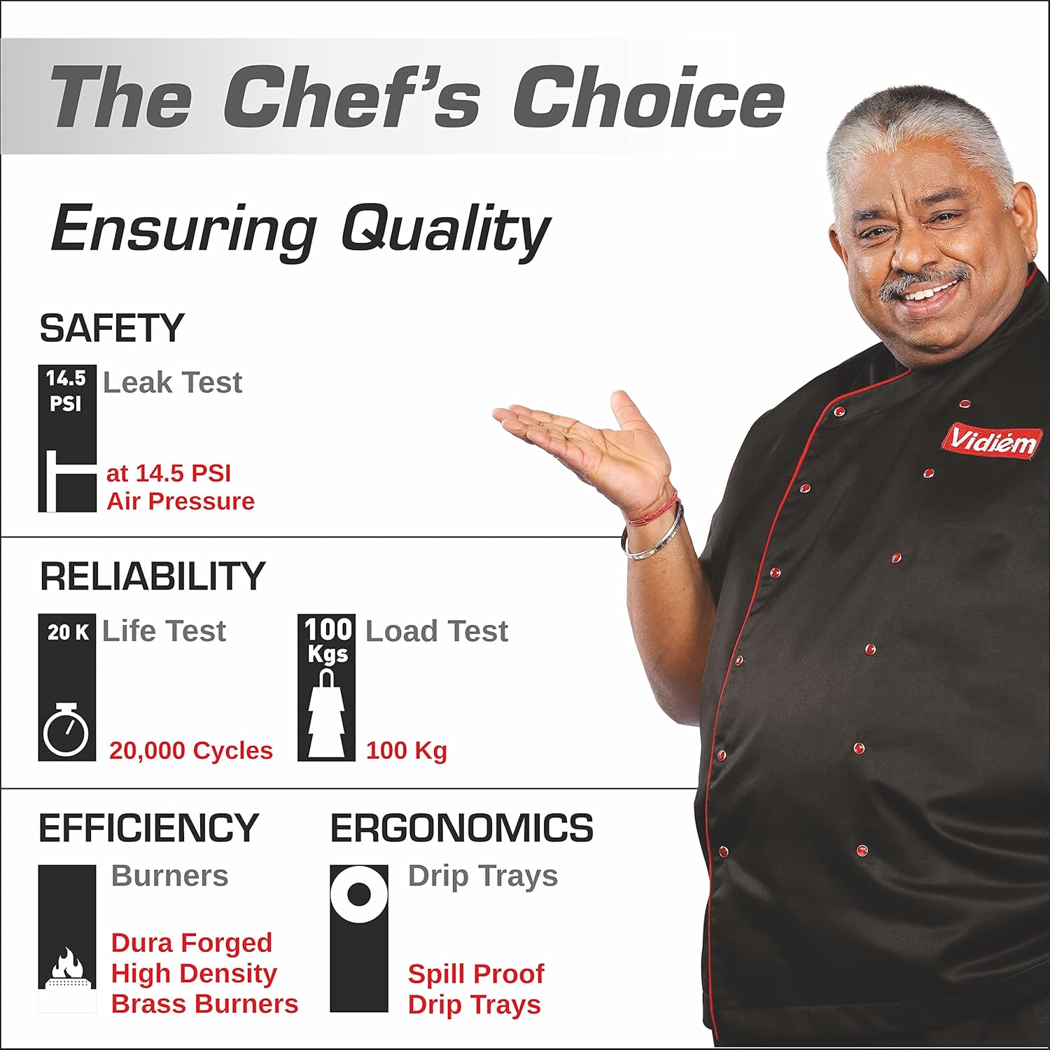 - ✅ Life Time Warranty on SS Body, 5 Years warranty on Product. Every Vidiem Stove undergoes stringent tests - Leak Test, Life Test & Load Test to provide you unchallenged Safety, Reliability, Durability & Performance.