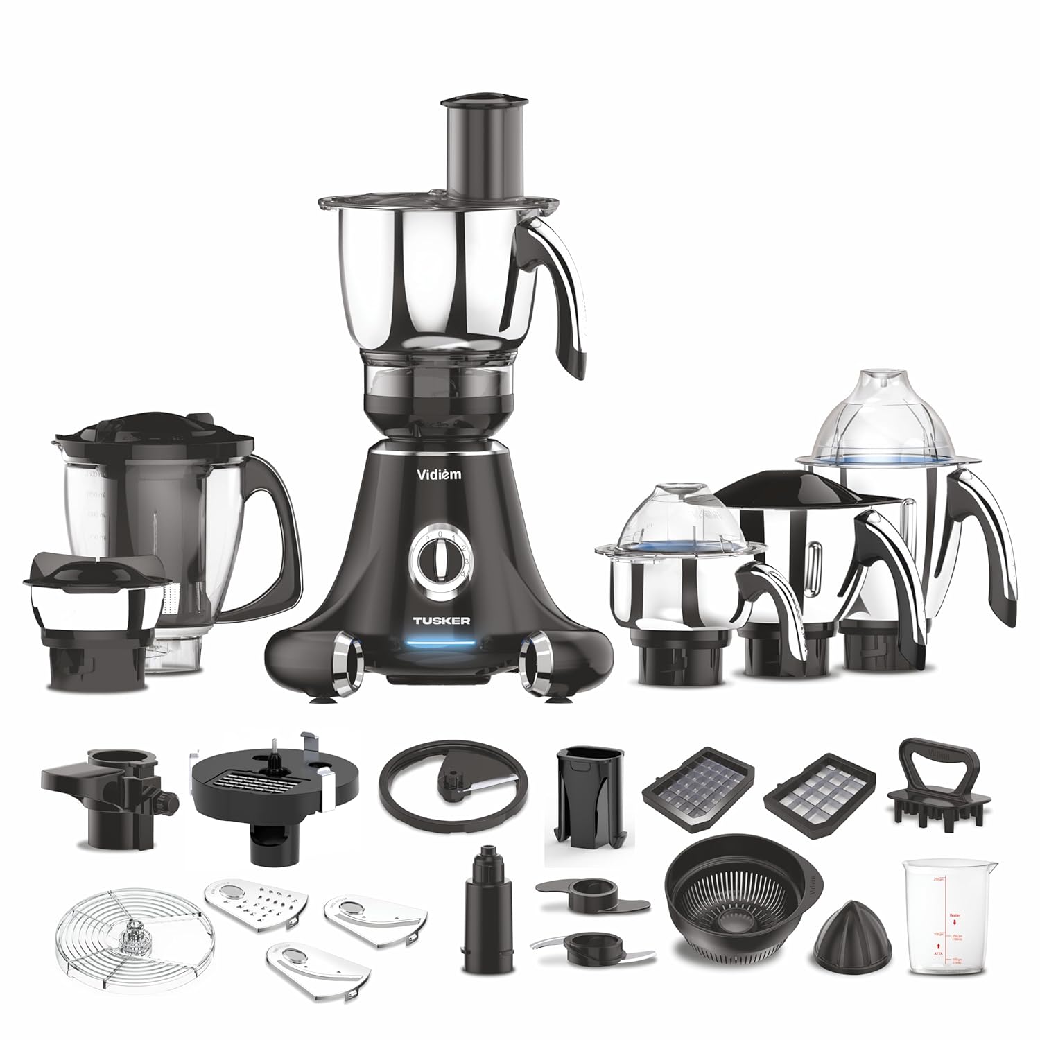 - ✅ Vidiem TUSKER - The Multitasker with Adjustable Vegetable Cutter - 12 mm to 35 mm, Dicing 10 mm & 15 mm, Thick & Thin Slicing,Grating, Chopping, Mincing, Kneading, Citrus Juicing, Mixing, Grinding, Crushing, Blending, Liquidising, … 2.5 Litre Stainless Steel Multi Chef with Double reduction Gear Box for High Torque & Low Noise with Polycarbonate Lid & Silicone Gaskets
