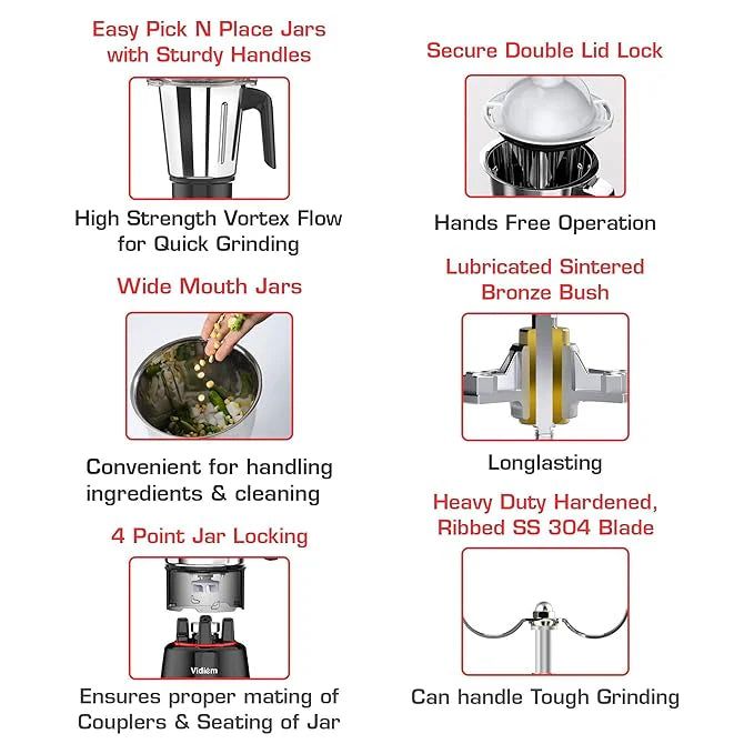 - Easy operation: Secure double lid lock for hands-free operation and 4-point jar lock system for stability.