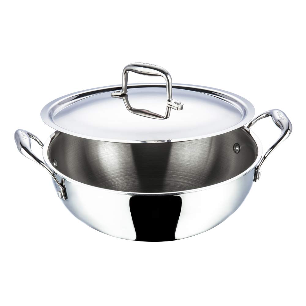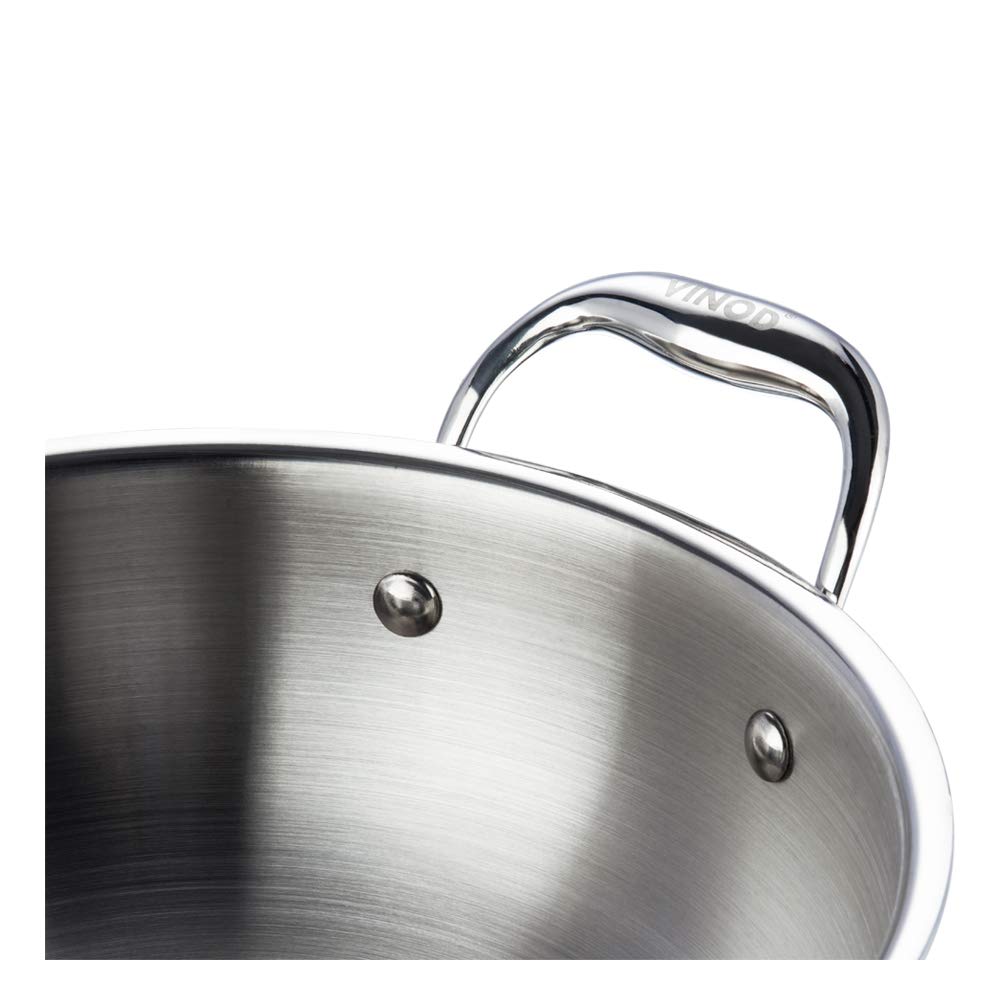 Vinod Stainless Steel Platinum Extra Deep Kadai, 26cm, 4.1 Liter, Silver