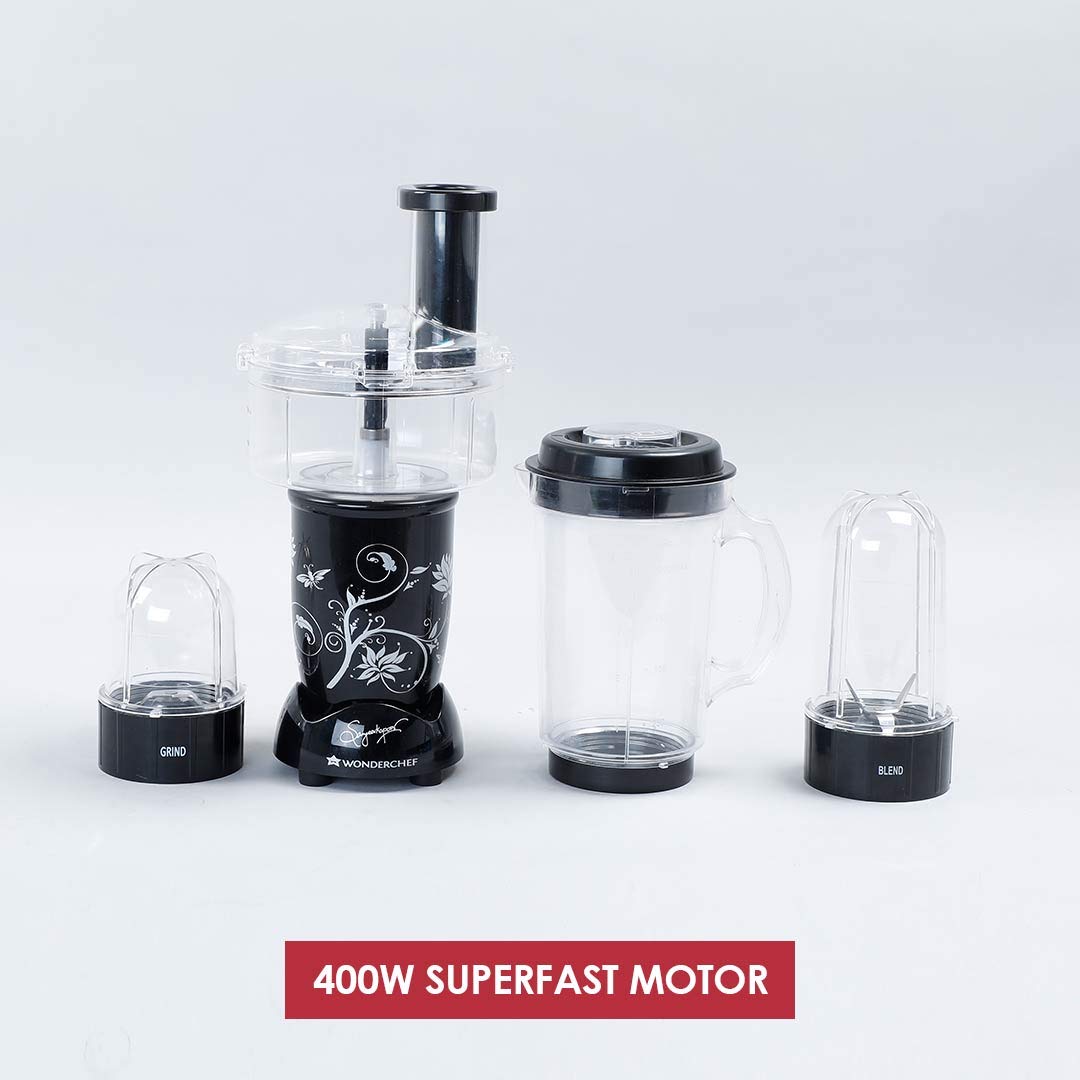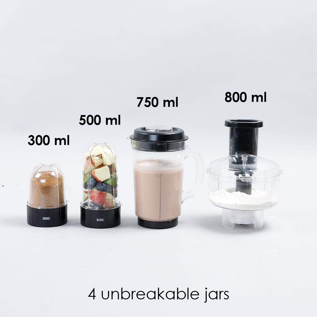 Nutri-Blend Compact Food Processor With Atta Kneader, 400W, 22000 RPM Mixer-Grinder, Blender, Chopper, Juicer, SS Blades, 4 Unbreakable Jars,