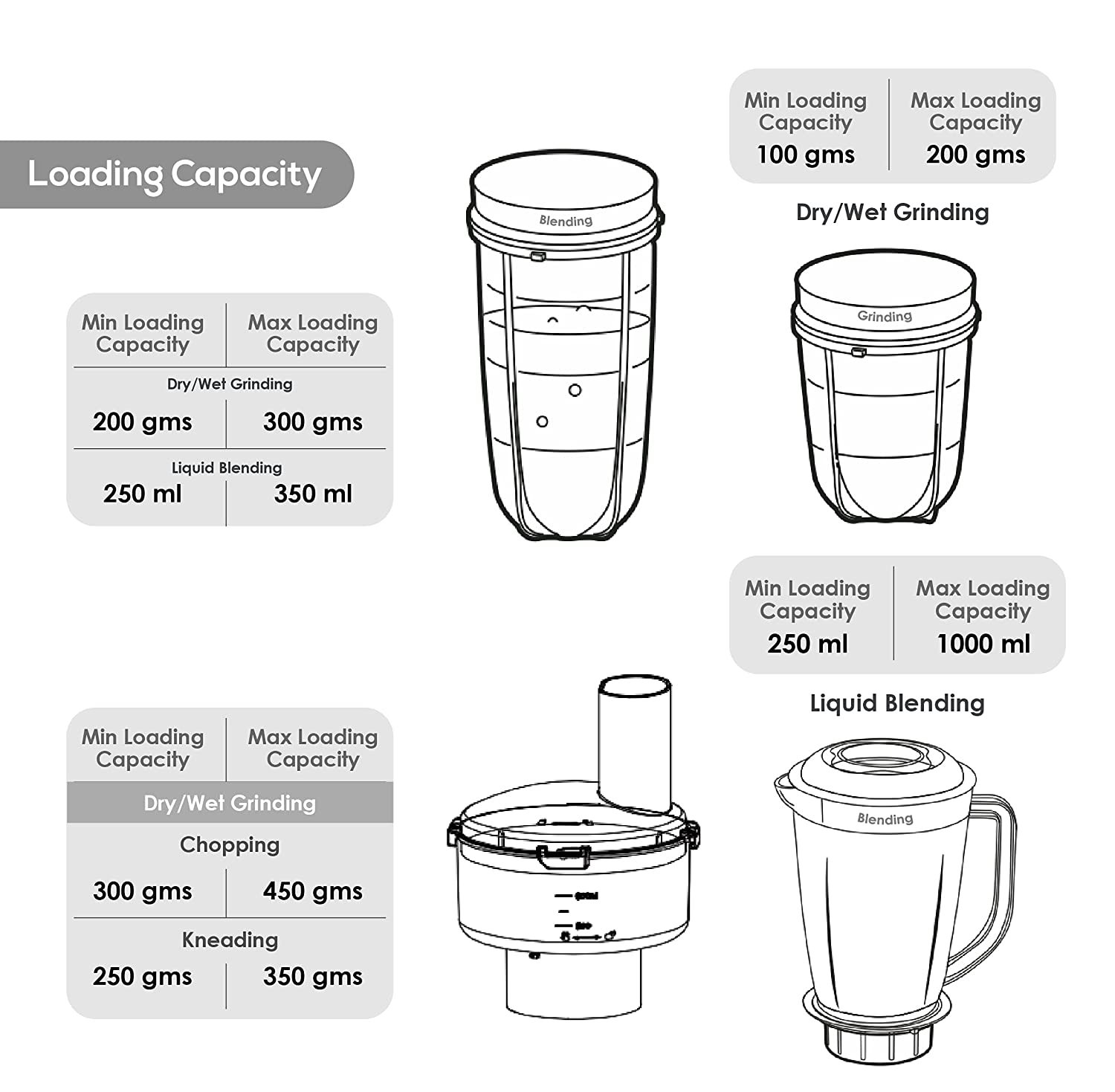 Nutri - blend FP (Food Processor)comes with extra attachments - a Big Jar for yummy shakes, a compact but fully functional Chopper, offering an all-in-one solution that functions as a mixer, grinder, blender, food processor and Atta kneader – all in one