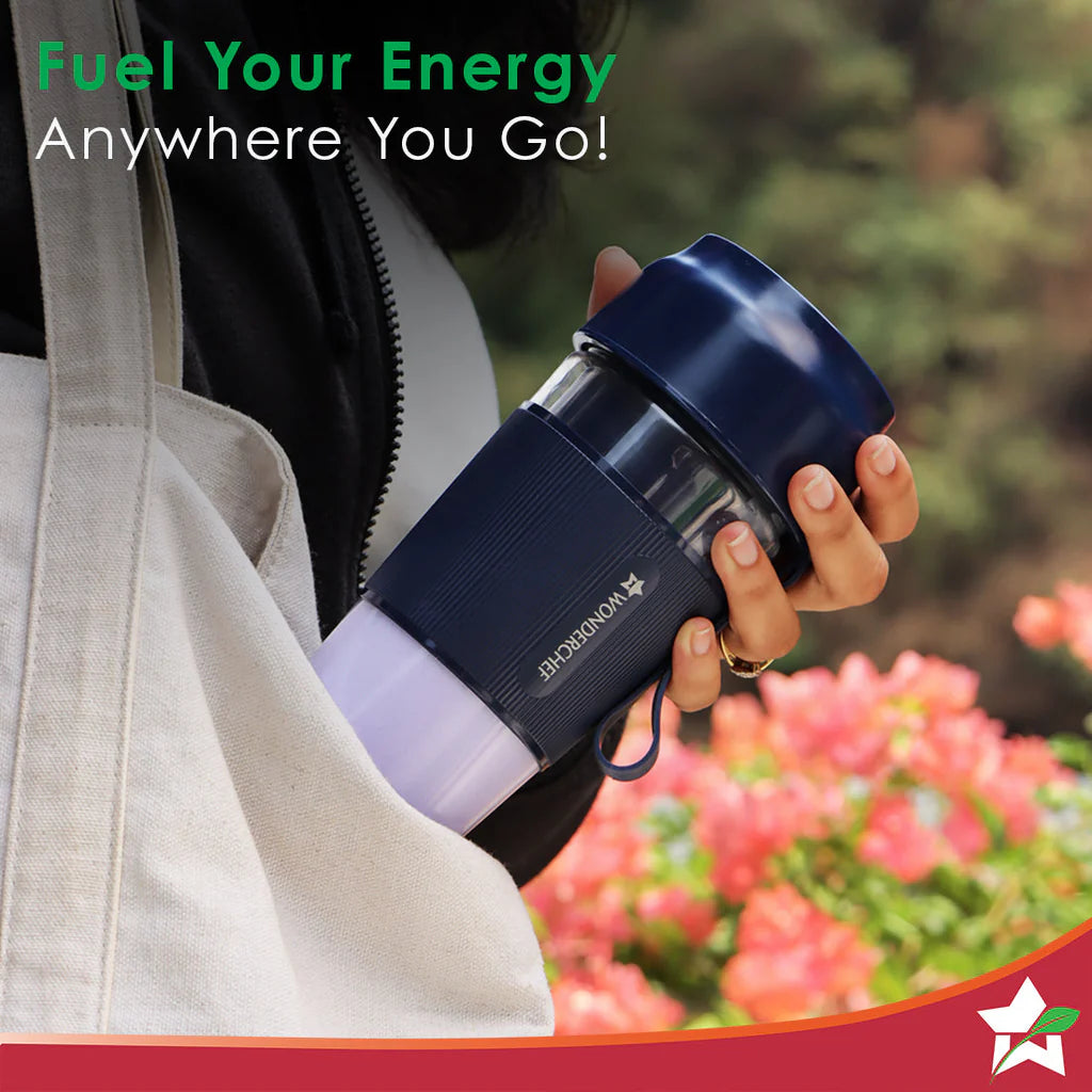 Wonderchef Nutri-Cup Portable Blender | USB Charging | Smoothie maker | SS Blades | Battery Operated Rechargeable Blender | 300ml | Compact Size | Blue