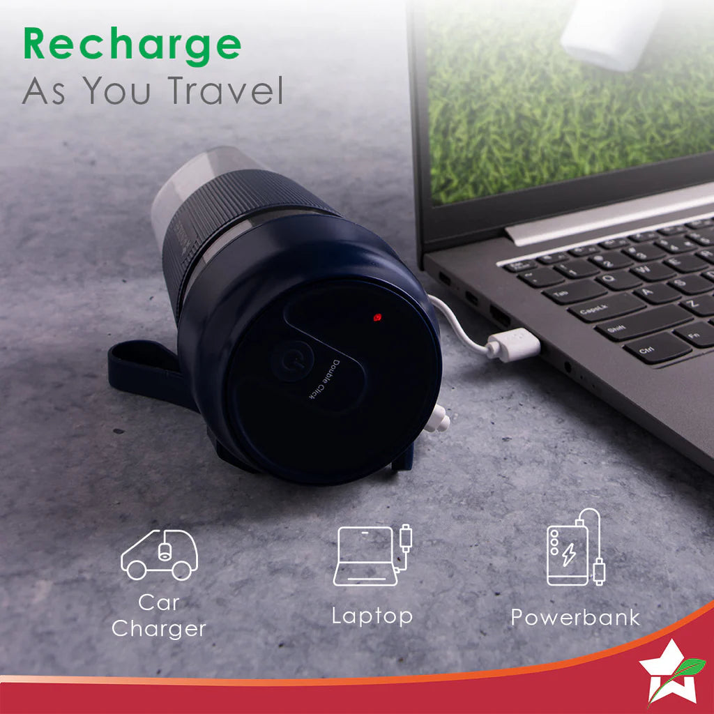 - RECHARGEABLE & CONVENIENT: Built-in rechargeable battery allows easy charging from power banks, laptops, computers, or mobile phones, ensuring seamless blending anytime, anywhere.